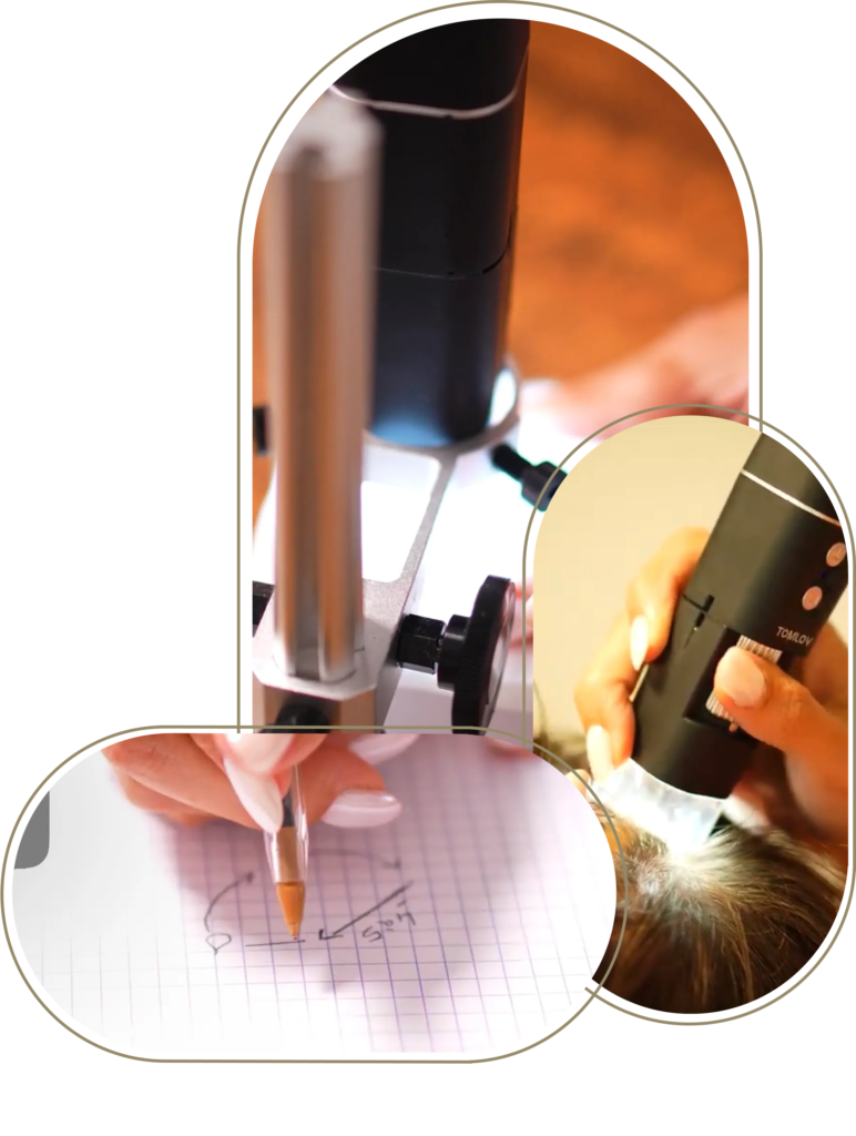 Il s’agit d’un trichogramme ; un examen microscopique, du cuir chevelu, des cheveux et de leurs racines ; ou de la barbe. Cette consultation est conseillée en cas de phénomènes alopéciques mais également en cas de dérèglements de votre épiderme. La consultation peut durer jusqu’à 1h00.